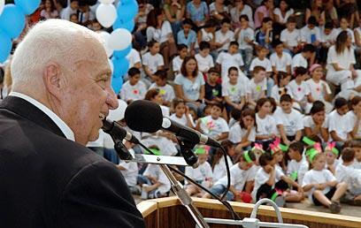 Sharon at Migdal Ha'emek. September 1, 2005 (Photo: Amos Ben-Gershom, Inc.)