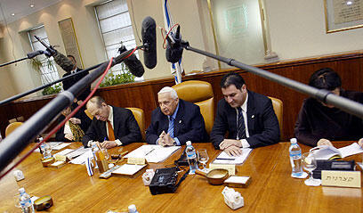 Ariel Sharon and Yisrael Maimon in a cabinet meeting (Photo: Flash 90)