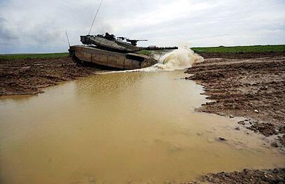IDF tank in Kissufim area, Sunday (Photo: Reuters)