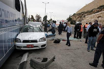 Three schoolgirls who witnessed the events were treated for shock. "This was nothing short of a miracle," Haim Weingarten of Zaka (Disaster Victim Identification), told Ynet. "The terrorist was apparently aiming for the bus, but a power pole that had fallen on the road stopped it."