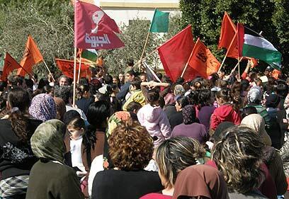 Thousands of residents embarked on a procession Monday afternoon passing through the communities of Arab Arraba and Sakhnin and ending in Deir Hanna. The demonstrators carried PLO flags, and the slogan for this year's Land Day was: "We are all united under Israeli fascism and racism."