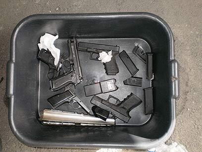 Following the discovery, all of the platforms were opened, exposing six M16 rifles, 20 FM handguns, 20 Glock handguns, 19 OZ handguns, 23 magazines stocked with bullets, and a number of electric shockers.