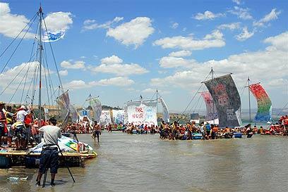 "The kibbutz youth proved today that only teamwork can overcome the power of nature," Marshak said. He added that each raft required the work of about 25 youngsters.