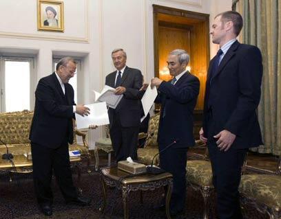 Iranian foreign minister (L) presenting package of proposals (Photo: Reuters)