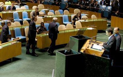 Delegates walk out on Ahmadinejad (Photo: AFP)