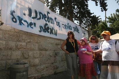 Esther Wachsman outside prime minister's residence (Photo: Gil Yohanan)