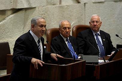 President Shimon Peres took the podium before Netanyahu, telling the 120 Knesset members that the coming winter will see them "make difficult and far-reaching decisions."