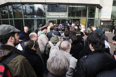 Reporters outside Munich courthouse Monday (Photo: AFP)