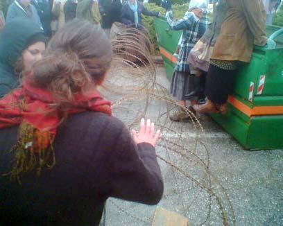 The officers eventually left the area. Several of the settlement's youth, yelling: "We won't give in to the freeze", threw mud at their vehicle.