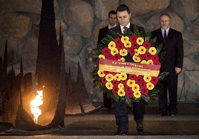 Gruevski lays a wreath at Yad Vashem Holocaust Museum (Photo: AP)