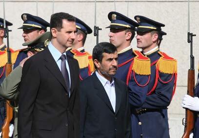 'Common enemies.' Assad (L) and Ahmadinejad in Damascus (Photo: AP)