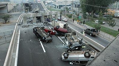 Chilean TV showed devastating images of the most powerful quake to hit the country in a half-century: In the second city of Concepcion trucks plunged into the fractured earth, homes fell, bridges collapsed and buildings were engulfed in flames. Injured people lay in the streets or on stretchers.