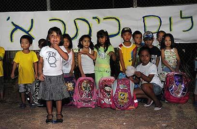 Foreign workers' kids at the beginning of the school year (Photo: Yaron Brener)