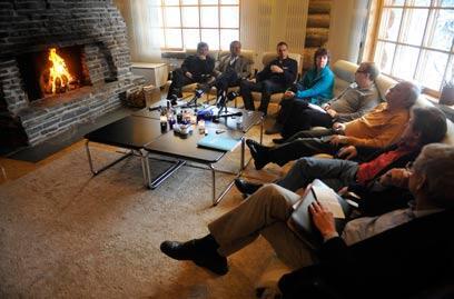 Sitting around the fire. Kouchner, Ashton, Stubb, and colleagues (Photo: Reuters)