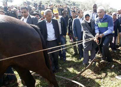 During 'Land Day' rally in West Bank, Fayyad gets behind horse-drawn plough and says, 'We want to create our version of facts on the ground, consistent with our people's right to self determination on their own land'