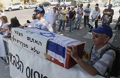 The demonstrators met with Interior Minister Eli Yishai outside the Prime Minister's Office. "He once again spoke of the mutual guarantees. That there is no country in the world that would do what Israel does for its soldiers, but in the meantime, we haven't seen them do anything. These are just words," Goldblatt said.