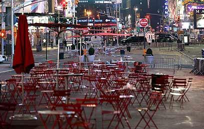 Times Square was eerily empty for several blocks on Saturday night, the busiest night of the week on the Great White Way as tourists and theater-goers watched from behind barricades as anti-terrorism units swarmed the scene.
