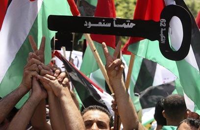 The rallies did not include political speeches, and the protesters were asked not to waive flags affiliated with the different sects. Demonstrators held keys symbolizing ownership over houses from which they were expelled during the 1948 war. The names of their former villages, alongside "we will be back" were written on top of the keys.