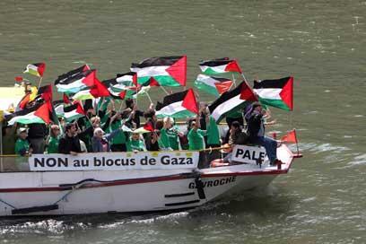 Earlier French Foreign Ministry spokesman Bernard Valero said his country is "still concerned about the humanitarian situation in Gaza and calls for a complete implementation of Security Council Resolution 1860." Pro-Palestinian activists identified with the flotilla by carrying Palestinian flags on a boat in the Seine River.