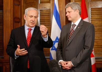 PM Netanyahu with Canada's Harper (Photo: AP)