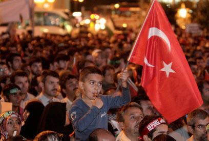 Turkish television broadcast images of tens of thousands of people in an anti-Israel protest in Istanbul's main square.