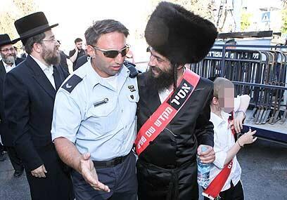 Earlier Thursday, an estimated 110,000 haredim took party in rallies in Jerusalem and Bnei Brak to protest the court decision and imprisonment, in what organizers dubbed "the mother of all protests."