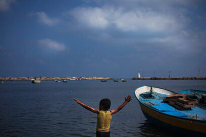 Gaza boy awaits Libyan ship (Photo: AP)