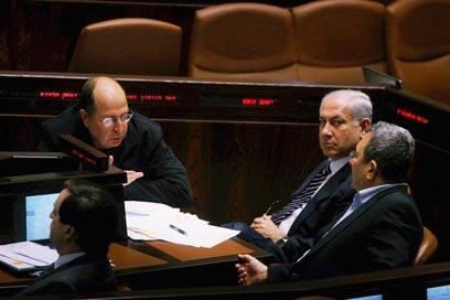 Netanyahu between Barak and Ya'alon. Coalition trouble (Photo: Alex Kolomoisky)