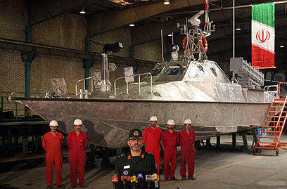 Inauguration of production lines for missile-launching speedboats comes day after Iranian President Ahmadinejad unveiled country's home-built bomber drone, which he said would deliver 'death' to Islamic Republic's enemies