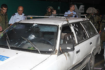 The victims' bullet-riddled car (Photo: Gil Yohanan)