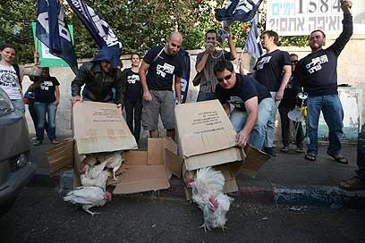The students gave Netanyahu a "wake-up call", releasing roosters and crying out through megaphones.