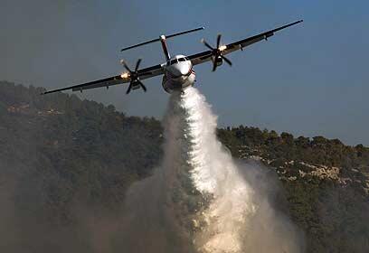 8:23 Greek firefighting planes land at Air Force base in Ramat David.