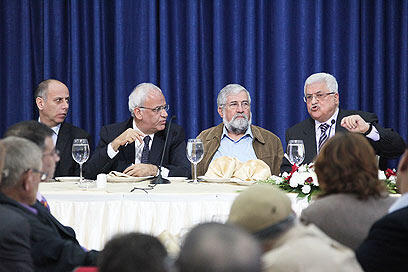 Abbas, Mitzna and Erekat (Photo: Mati Mailshtein)