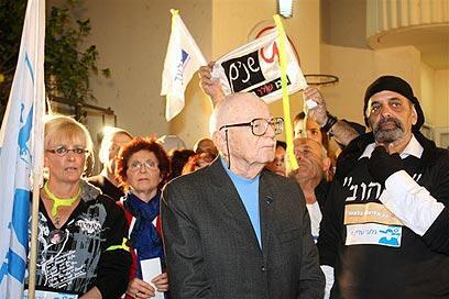 Shalit's grandfather in Friday's rally (Photo: George Ginsburg)