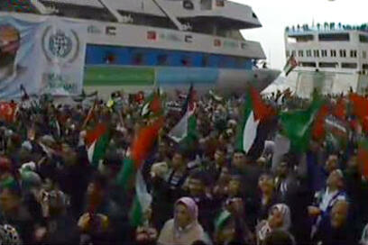 Thousands greet Turkish protest ship; chant 'death to Israel'
