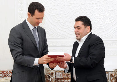 Syrian President Bashar Assad warmly welcomed Monday an unusual guest at his palace – Samir Kuntar, who murdered an Israeli family and was released from prison in 2008 in the framework of the swap for the bodies of IDF soldiers Eldad Regev and Ehud Goldwasser.