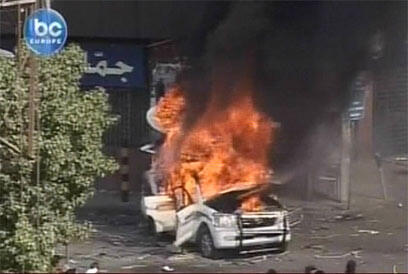 Al-Jazeera vehicle torched (Photo: Al-Jazeera)