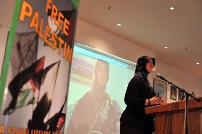 The 43-year-old, who wore a black headscarf that tightly framed her face as she gave an address on "Islam from the perspective of Western women", discussed her own conversion which took place 15 weeks ago.