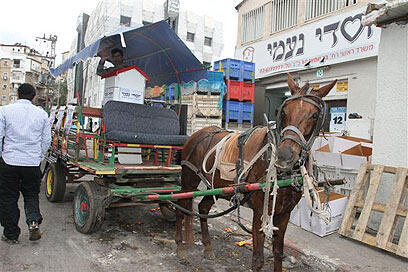 Members of the Chasdei Naomi organization, which provides food to the needy, decided to protest the recent gas price hikes by replacing the cars normally used for their weekly meal distribution with horse-drawn carriages this past Tuesday.