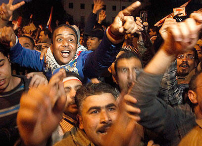 The masses gathered at Cairo's al-Tahrir Square responded to the announcement with cries of joy and car horns were heard around the capital in celebration, after Suleiman made the announcement on national TV. Hundreds of thousands of Egyptian protesters waved flags, cried, cheered and embraced, chanting