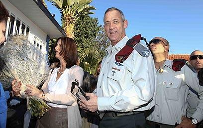 Ashkenazi told Gantz during the ceremony, "Nothing prepares you for this great responsibility." He mentioned the Qassam rocket whichhit the western Negev earlier, pulled out a book and said, "I am handing you the book of Gaza targets."