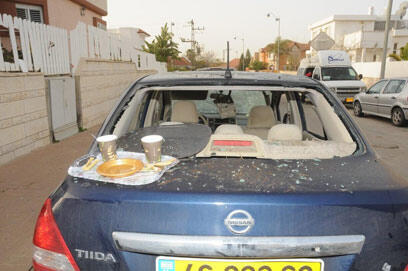 Car damaged in Grad attack (Photo: Herzl Yosef)