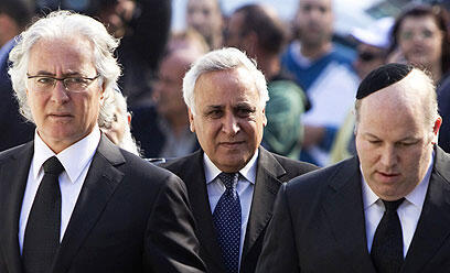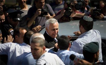 Katsav and his attorneys leaving the court (Photo: AFP)