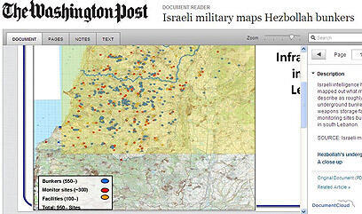Washington Post obtains map detailing bunkers, arms caches, surveillance sites in south Lebanon. IDF official: We want to show world that Shiite group has turned villages into fighting zones