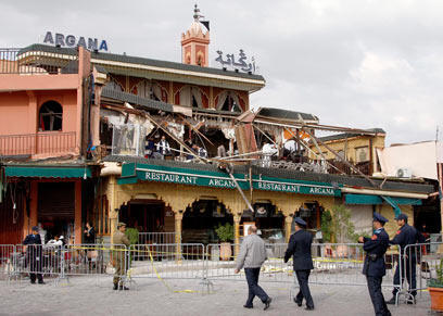A massive terrorist bombing tore through a tourist cafe in the bustling heart of Marrakech's old quarter on Thursday in the country's deadliest attack in eight years.
