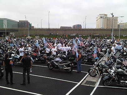 The annual memorial day rally has been taking place since 1987, drawing hundreds of thousands of bikers from all across the US to tour the capital's various memorial sites. Waving Israeli flags, and ones bearing Shalit's face, 50 Israeli bikers joined the rally this year.