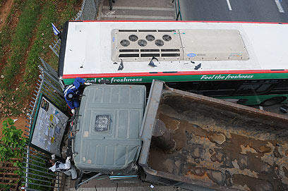 Truck came to halt at school fence (Photo: Yaron Brener)