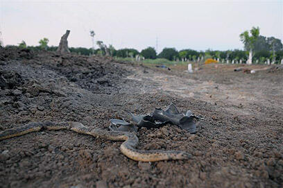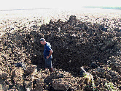 Rocket-created crater in Be'er Tuvia (Photo: Yaniv Ohana)