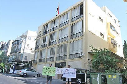 Protesters in front of Egyptian Embassy in Tel Aviv (Photo: Ofer Amram)
