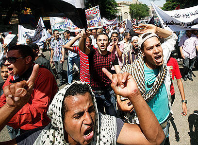 Meanwhile, several protesters gathered in front of the Egyptian Embassy in Tel Aviv. The demonstrators held signs in Arabic reading: "Peace is in both nations' interest," and "our flag burned – your honor burned!"